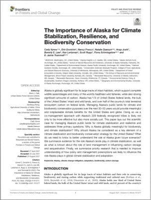 The Importance of Alaska for Climate Stabilization, Resilience, and Biodiversity Conservation: This paper explores Alaska’s global significance for biodiversity conservation and climate stabilization, and outlines why Alaska should be a key part of a national strategy to address climate change. READ SUMMARY