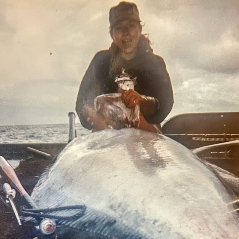 Left: Erin fishing near Adak, Aleutian Islands ca. 2000. Photo provided.